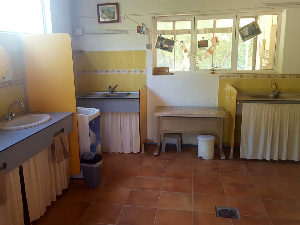 Bloc sanitaires avec eau chaude, lave-linge et réfrigérateur à disposition.