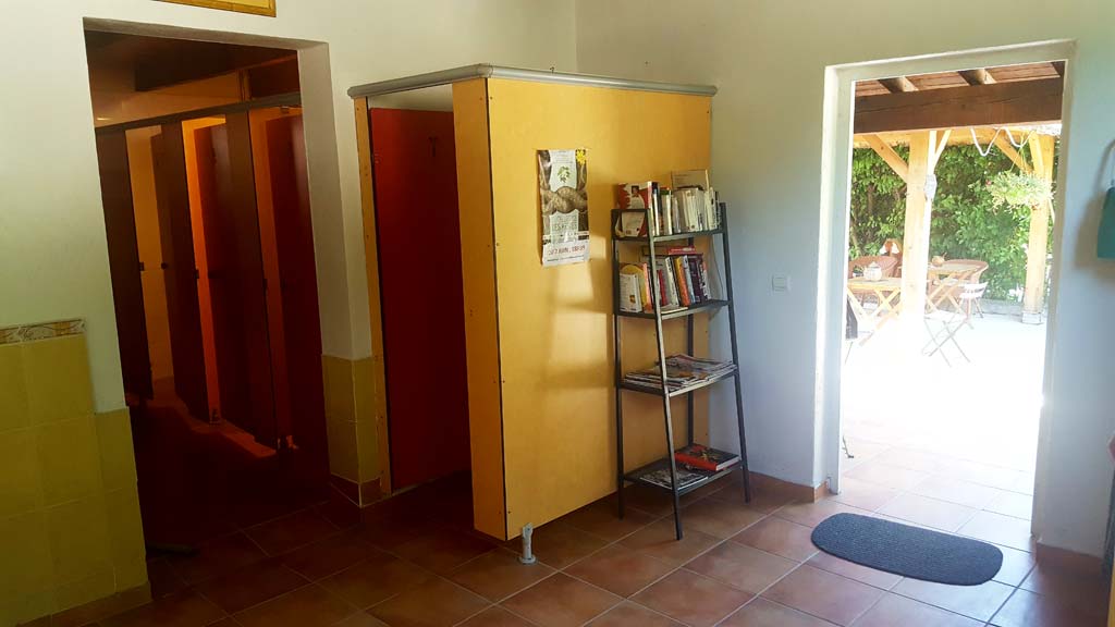 Bloc sanitaires avec eau chaude, lave-linge et réfrigérateur à disposition.